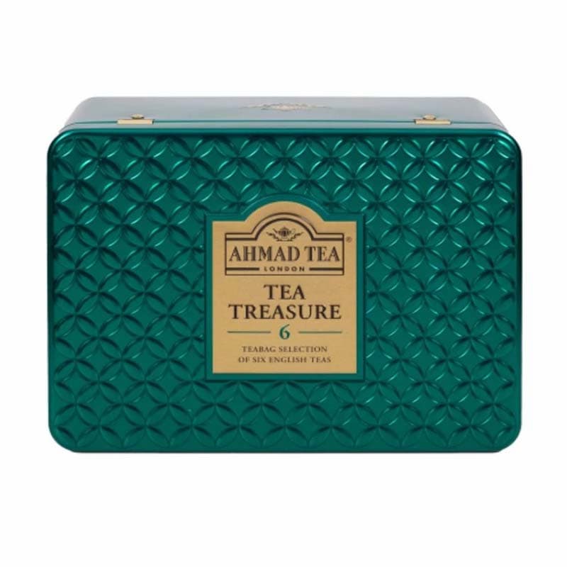 جعبه گنج احمد چای برای هر عاشق چای پیدا کردنی عالی است. چای احمد تی بگ نفیس تی ترژر (Tea Treasure) با جعبه ی فلزی آبی رنگ مناسب هدیه دادن می باشد. درون این جعبه، 60 تی بگ از 6 نوع چای انگلیسی منتخب می باشد.