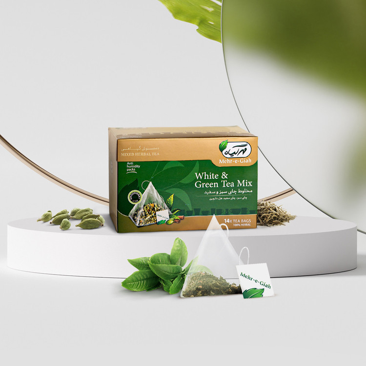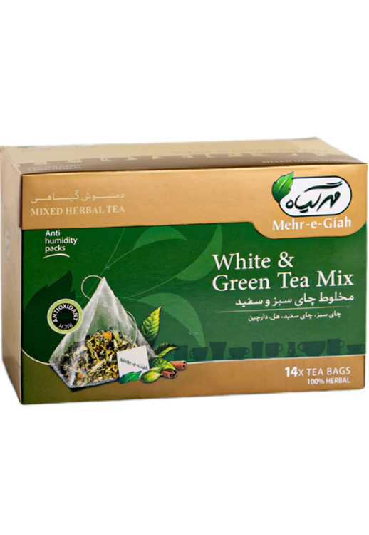 دمنوش کیسه ای چای سبز و سفید مهرگیاه 14 عددی