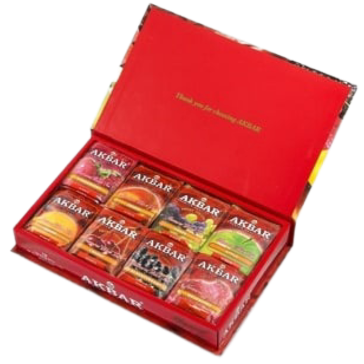 چایهای میوهای اکبر صد در صد طبیعی بوده و همراه با تکههای واقعی میوه است. پک 8 طعم چای میوهای اکبر که برای هدیه دادن بسیار مناسب میباشد شامل8 طعم چای: توتفرنگی، آلبالو، تمشک، انگور سیاه، سیب، انگور، لیمو و هلو است. پک 8 طعم چای میوهای مناسب هدیه اکبر با بستهبندی خاص و شکیل خود گزینه مناسبی برای هدیه دادن به دوستان، اقوام و آشنایان است؛ اگر شما هم به دنبال هدیهای خاص برای عزیزی هستید، پک هشتاد عددی 8 طعم چای میوهای اکبر پیشنهاد متفاوتی برای شما خواهد بود، مطمئن باشید دیگران هم طرفدار چای اکبر خواهند شد. کافیست یکبار امتحان کنید.